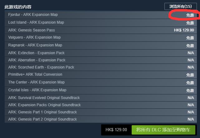 1,首先我們進入Steam方舟界面,點擊第一個免費DLC。
