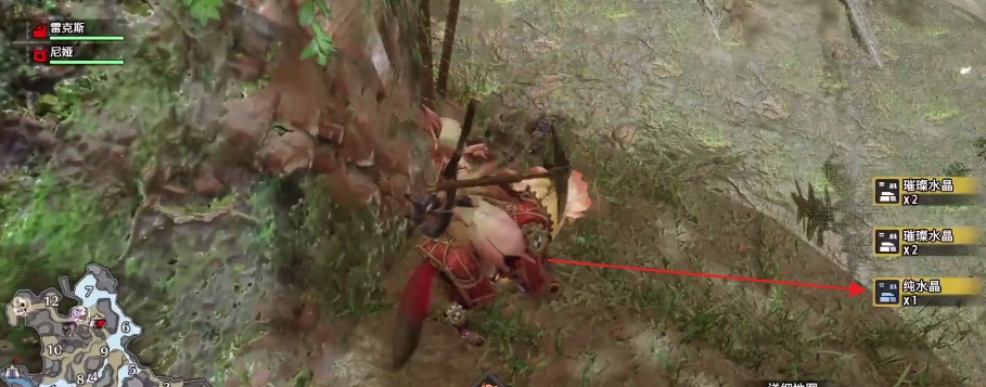 首頁 怪物獵人:崛起 問答 怪物獵人:崛起曙光純水晶在哪裡挖? 2022-11-16 1、怪物獵人崛起曙光遊戲中的純水晶在水沒林,在輔助營地裡面。首先傳送到輔助營地。2、然後往右邊的山間夾道走。3、走兩步就可以看到礦脈了,點擊採集。4、採集後就可以獲得純水晶了。如下圖。