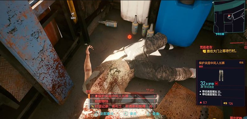 首頁 賽博朋克2077 問答 中間人長褲的具體位置在哪裡? 2022-12-21 中間人長褲的具體位置在日本街-長褲扭扭街,進入街道。 繞過站街女,進入左側巷子。跳上垃圾桶,向上攀爬。 一路向上,見樓梯就爬。最後上梯子,來到樓頂。進入樓頂房間。屍體上就是長褲。還有對話記錄和晶元。