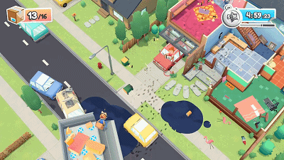 既然是「暴力」搬家,最常用的動作無非是拖拽大型傢具、四處投擲小家電、打碎窗戶把物品直接扔出去等。整個搬家過程在現實里是看不到的,這也是游戲的樂趣所在:為了讓貨物全上車,玩家可以敞開思路,把傢具搞壞也沒有關係,甚至自己去開闢一些快捷的通道,比如從二樓直接把傢具丟下來。