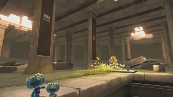 3. 使用方法:游上牆壁後,左邊蘑菇頭固定不動即可攀在牆上。