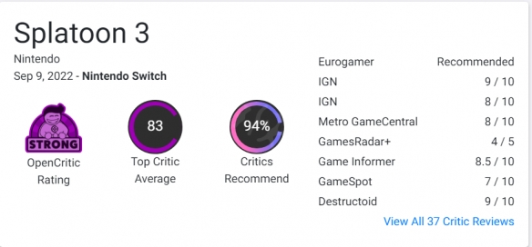 噴射戰士3是任天堂開發的第三人稱射擊游戲,為斯普拉遁系列第三作。目前游戲的媒體評分已經解禁,很多小夥伴可能還不清楚噴射戰士3評分怎麼樣,今天小編給大家帶來噴射戰士3游戲評分情況一覽,快來看一下吧。
