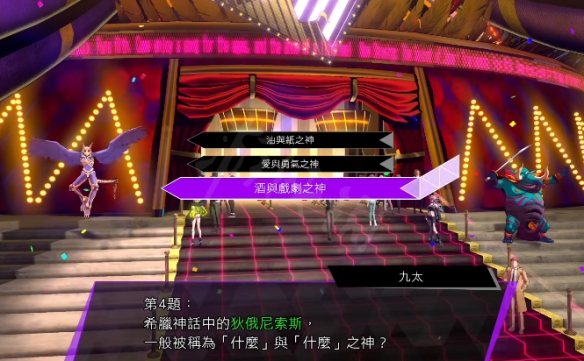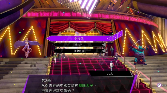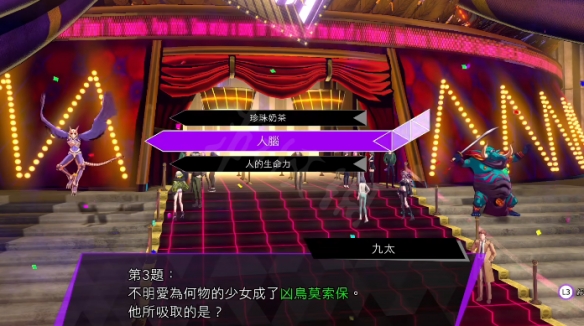 來到馬戲團業魔殿門口與九太對話,需要答4道題