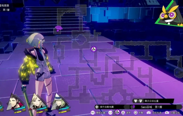備注:三人都換有槍擊的仲魔,集火一個目標打,這個怪經過一定回合後會自爆,不集火的話他們的技能都能回血所以要集火打,具體位置如下圖: