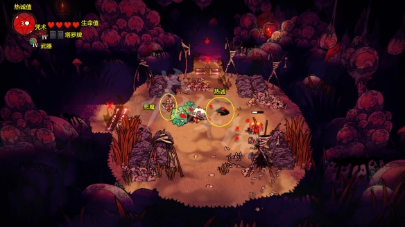 熱誠值:擊倒敵人後掉落的紅色小球就是熱誠點,積蓄熱誠可以拿來釋放咒術。中間的數字表示當前咒術可以使用的次數。