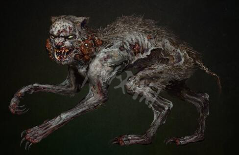 從圖中可以看出這只貓有著發黃的獠牙和一雙閃著綠光的眼睛,面部也十分猙獰,還有膿包從開放的瘡口中滲出,十分可怕。