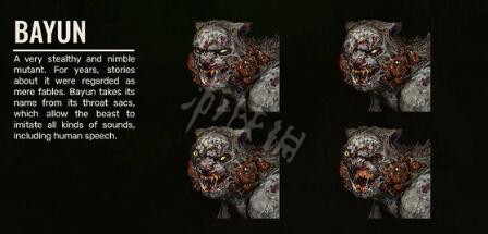 官方描述稱其為“Bayun”,一個非常隱蔽且靈活的變種生物,多年來,這個生物只是被當為一個恐怖的傳說,它的名字來源於它的喉囊,它獨特的喉囊能讓其模仿各種聲音,包括人類的語言。