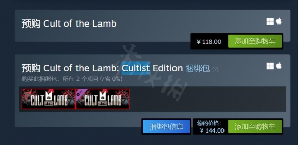 游戲售價為118元,捆綁包售價為144元,裡面除了游戲本體還包括一個異教徒包dlc。