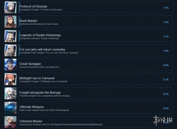 以上就是英雄傳說黎之軌跡成就獎盃一覽全部內容,想要了解更多相關攻略的小夥伴可以持續關注遊俠網,這里每天會為大家推送最新最全的攻略,一定不要錯過哦。