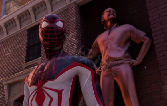 蜘蛛俠邁爾斯中為紀念漫威之父斯坦李,特意在前作彼得與MJ約會的地方建造了斯坦李的巨型雕像。