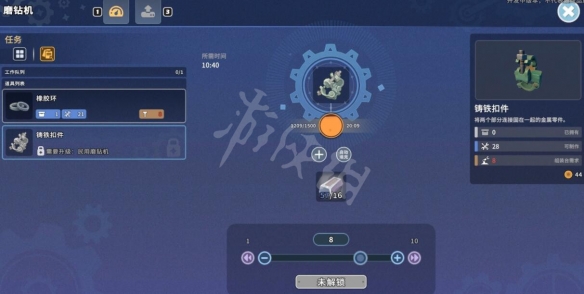製作民用磨鑽機需要使用:青銅板材*3、銅制齒輪*5、錳鋼錠*4以及馬達*1。