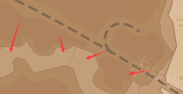在玩家通過主線劇情修復好大橋之後,可以通過橋來到另一邊的沙漠,這片沙漠的一半部分主要刷的怪就是三叉戟蠍。大致分布在圖中標了箭頭的地方。