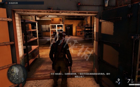 倉庫里找到歐利希,在倉庫里放置老鼠炸彈,待他聊天結束出來必會向老鼠開槍,然後就會被炸死。