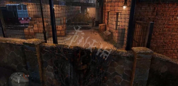 使用滑索前進,然後爬上梯子,鑽過鐵絲網上的洞。