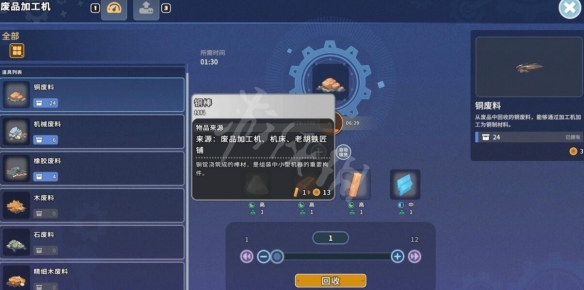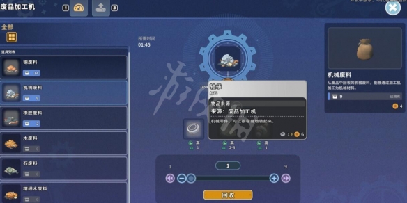 使用廢品加工機提煉機械廢料有概率獲得軸承,由於獲取數量不固定,因此需要玩家根據自身的實際情況調整機械廢料的開采數量。