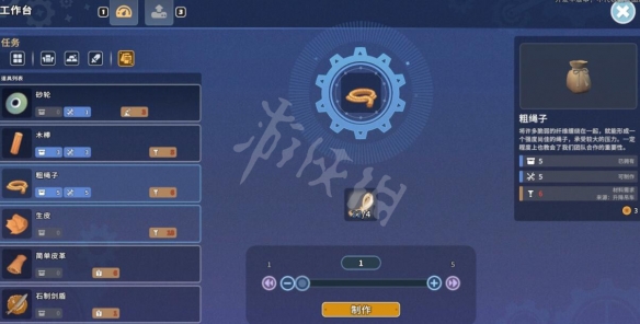 隨後在工作台處使用16個植物纖維製作4個粗繩子。