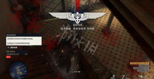不過他只會在庄園建築的二樓區域徘徊,當你上樓梯靠近穆勒辦公室時,會有大概率遇到他,因此你有大概率可以將他暗殺掉。