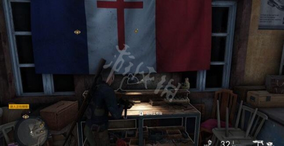 就在屍體旁邊,可以找到一個法國革命軍旗幟,旗幟下方就是工作台。
