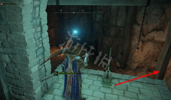 在前方通過右側監牢後的洞穴繼續前進,在洞窟盡頭處掉落至下層。