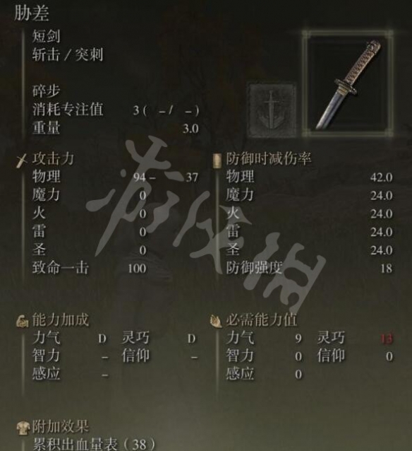 短劍脅差基礎屬性如下