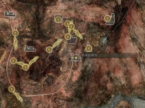 黑夜魔礫的獲得地點位於地圖上的蓋利德區域,瑟利亞關卡附近的格威的破屋處。具體位置如圖所示。