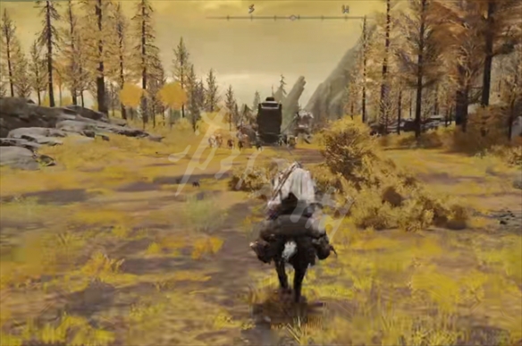 2、傳送到這邊從賜福點出來就能看到路上的車隊,車隊後方有個寶箱,巨星錘就在裡面;