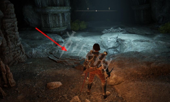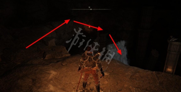 深入洞穴來到瀑布處,向左走到篝火處通過瀑布跳至下方平台。