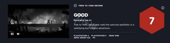 黃泉之路是一個短暫但迷人的旅程,就像在玩一部單色的日本電影,盡管它在大多數其它方面都有不足,但這種出色的表現力足以支撐它。