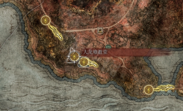 龍心臟可以用來在龍饗教堂兌換的各種龍饗禱告,地圖上共有兩個龍饗教堂,分別位於寧姆格福西側的小島和蓋利德。具體位置如圖所示: