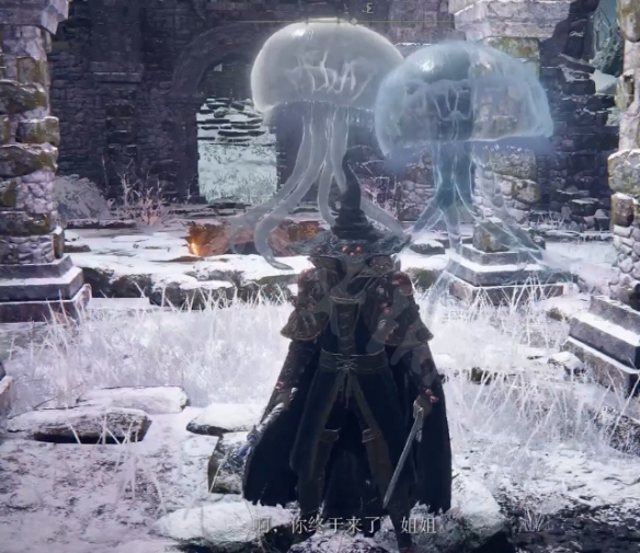 進入廢墟中,會發現地下室入口旁有一隻會說話的靈魂水母,裝備從調靈師羅德莉卡處獲得的靈魂水母的骨灰,在水母面前召喚骨灰,兩只水母會在對話後一起消失,然後玩家會獲得一個動作“轉圈”,地下室的封印也會解除,可以進入探索。