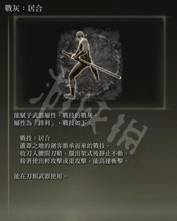 以上就是老頭環戰灰居合獲得方法介紹全部內容,想要了解更多相關攻略的小夥伴可以持續關注遊俠網,這裡每天會為大家推送最新最全的攻略,一定不要錯過哦。