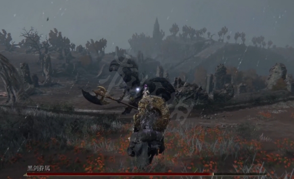 在野獸神殿門口有一隻Boss“黑劍眷屬”,將其擊殺後即可獲得石像鬼黑戟與另一把武器石像鬼黑劍。