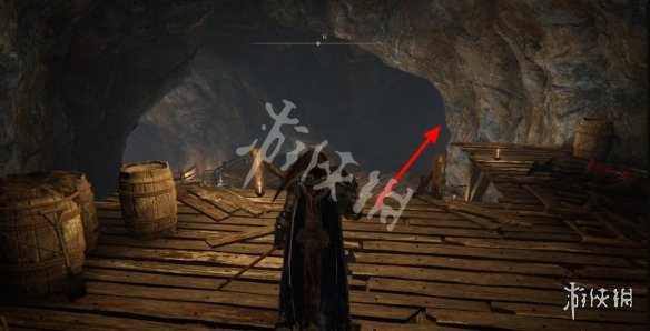從 賜福【蓋爾坑道出發】來到下圖所示位置後向右走。