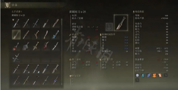 個人感覺是一把挺尷尬的武器,吃信仰力敏,即使滿強也是3個D,註定它可能契合神聖質變。神聖短刀也有比它強的,黃銅短刀其他方面中規中矩,無論是長度,面板也好,基礎面板還湊合還不錯,過於平庸而不突出,不推薦