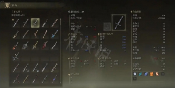 面板低,長度湊合,但,它強在那獨一無二的140處決倍率。而且慈悲短劍基礎傷害是還行的,成長性不好,在前期需要處決的地方,例如削韌處決彈反處決,用這把武器是不錯的,且長度比匕首略長。等到中後期後期慈悲短劍的發力期結束,在低等級區間還是不錯的,還算推薦,後期不推薦。順便說一下碎步戰技,碎步一直是神技,當然獵犬步伐更好,很多時候翻滾難躲的碎步好躲,碎步也是魂系列1+0,10+0常備。
