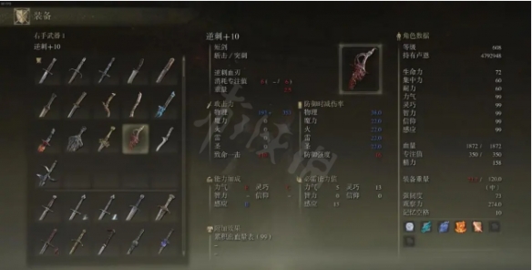 據說搭配慈悲短劍好用。逆刺本身有著還不錯的面板的同時,有著大額的出血,戰技也是特殊戰技,可以連續釋放的高傷害高出血斬擊。是一把很不錯的打出血的武器,處決倍率110屬於附贈品也很好了,弱出血的BOSS且攻擊頻率高的,可以用這個,推薦