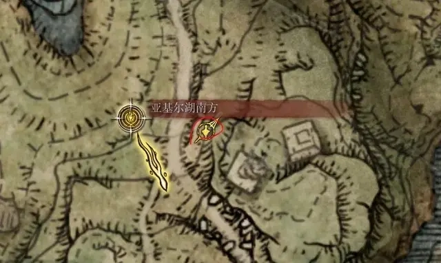 從亞基爾湖南方出發,在圖中位置能看到一隻雜兵模樣的小怪。擊殺這只小怪後會出現一隻符文熊,打敗熊怪後可獲得1個淚滴幼體。