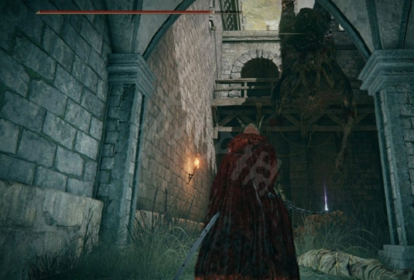 3、在這裡有一處屍堆,附近還有一個接肢貴族精英怪;上面倒掛著一具巨人的屍體,屍堆頂端有一個道具;