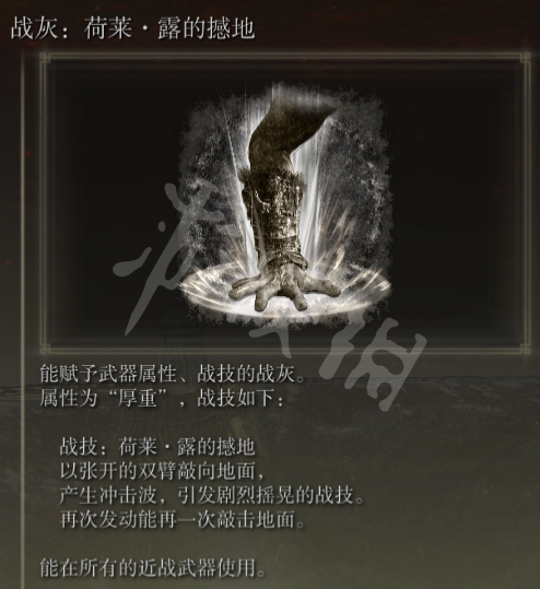 艾爾登法環荷萊露的撼地如何獲得?荷萊露的撼地可以賦予武器特殊屬性,是一個非常好用的戰灰,下面小編就帶來艾爾登法環荷萊露的撼地戰灰獲取方法分享,一起來看看吧。