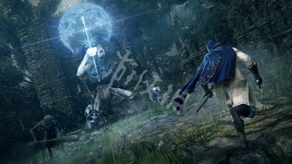 左右手同持武器從左攻擊+地面亂舞+下砸---翻滾躲開前兩下攻擊之後遠離以避免亂舞攻擊,對於最後下砸攻擊,選擇向前翻滾躲開後攻擊。