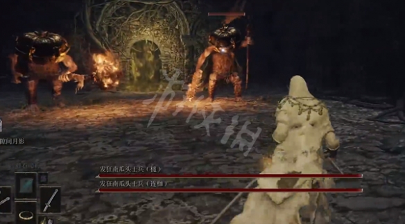 4、進去之後會看見兩個boss,一個叫發狂南瓜頭士兵(槌),另一個是發狂南瓜頭士兵(連枷),將它們擊殺即可;