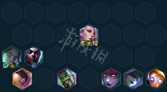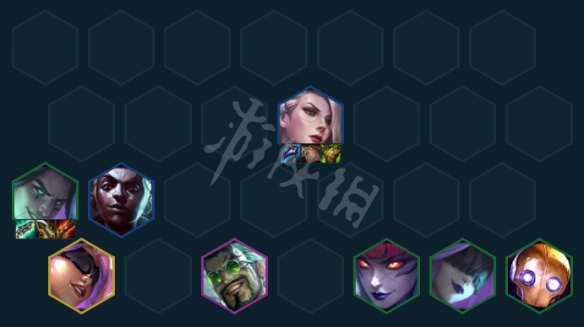 順利的話拉八找澤麗和德萊文開出5執事羈絆,也可以螳螂和其他刺客單位開4刺客,在八級全員追三星提升質量即可。站位上男刀抓敵方C位的位置,機器人和男刀站不同邊,辛德拉和機器人站一邊,艾克和男刀站一邊。