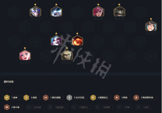 鑒於體系陣容後續拉九,加上成型壓力較大,這里前中期過渡體系推薦賞金搭配強襲進行過渡,這里我們拿到俄洛伊、女槍、船長、納爾以及挖掘機,湊出3賞金2格鬥以及2強襲1名流羈絆,隨後我們多餘的人口可湊2狙神或2槍手,或者單掛一張打工費卡都是可行的,利用賞金羈絆的特殊效果,助力跟我們更快速的過渡拉人口。