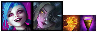 最後是金克絲和狐狸,兩人均可持有剩餘的輸出或功能裝備,輸出裝備可選擇正義、或者鬼書或者其他的藍量續航及法強裝備,功能裝這裡最佳的自然就是聖杯了。