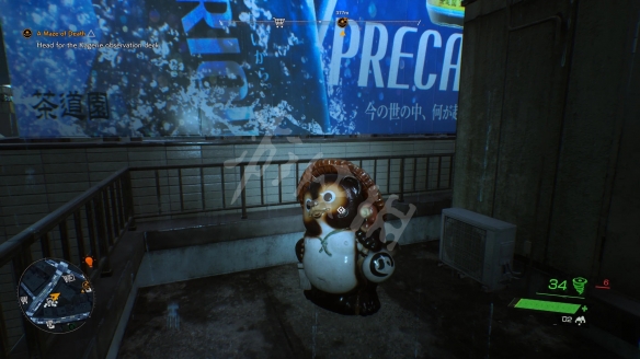 使用並田神社以西的天狗抓點,然後跳到東北屋頂,在那裡你可以看到一隻偽裝成狸貓雕像的狸貓。