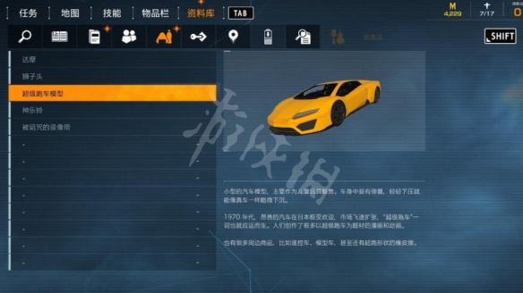 進入建築後在左手邊房間的桌子上可以找到超級跑車模型。