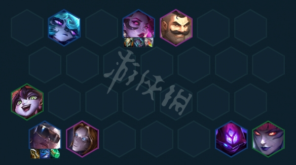 陣容組成(從左到右,從上到下):薇古絲(3)、莫甘娜(3)、布隆(4)、璐璐(2)賽娜(3)、奧莉安娜(4)、瑪爾扎哈(3)、婕拉(2)