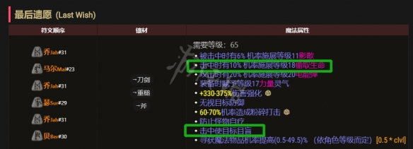 最後看個天花板,超級貴超級貴的一個組合,雙最後遺願,可以提供34的力量靈氣,這比米山還牛逼,有偷血,影散,但是偷血和致盲同屬詛咒會相互覆蓋,就很難受,不僅難受自己,還難受角色是近戰的角色,這個看看就好了。