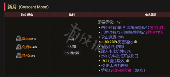 2,新月劍:有幾率釋放靜電立場,可以快速降低血量,可以考慮,雙新月/悔恨+新月。