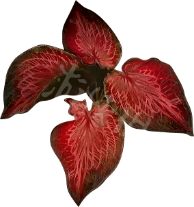 深紅的葉子,有粗大的脈。非常罕見的發現。靜脈中可以感覺到微弱的脈搏。